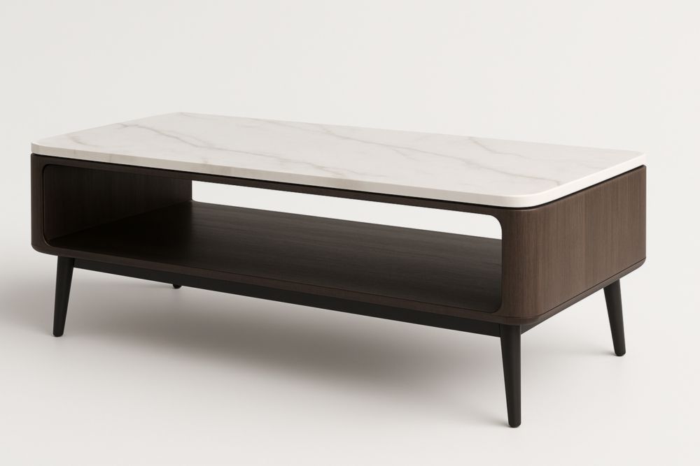 Table basse en MDF et marbre blanc 110x60x45 cm