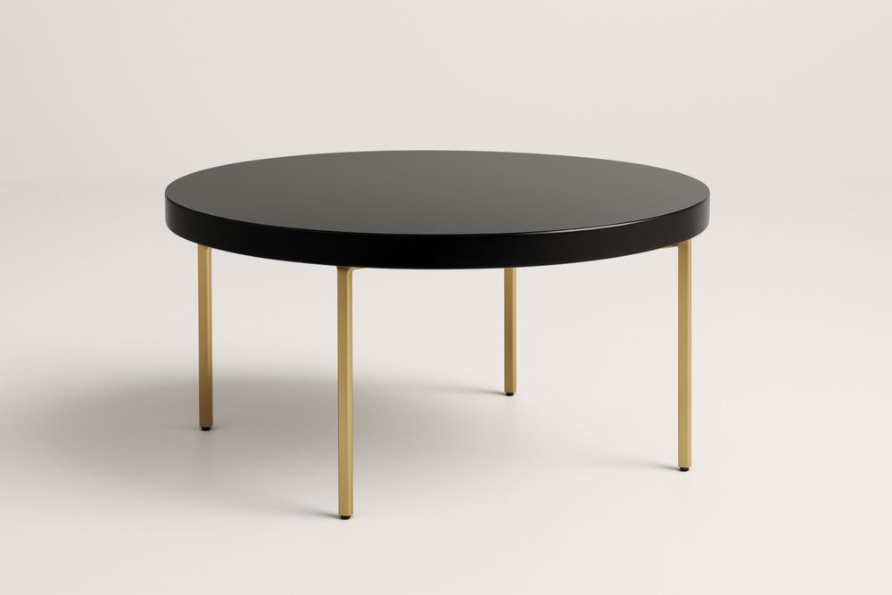 Table basse ronde MDF Noir Pieds Aluminium Doré Ø90cm H40cm